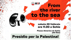 Ci troviamo in Piazza Almerico da Schio per un presidio di solidarietà promosso da Alto Vicentino per la Palestina.