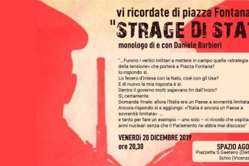 Venerdì 20 dicembre ore 20.30CSA Arcadia e Spazio Agorà presentaVI RICORDATE DI PIAZZA FONTANA? FU «STRAGE DI STATO»di e con Daniele Barbieri Per i 50 anni dal... Read More...